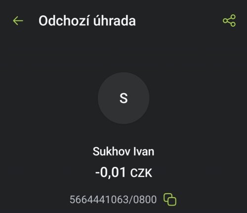 Poslat zprávupřidal/a skutečné jméno majitele účtu: Ivan Sukhov k bankovnímu účtu: 5664441063/0800