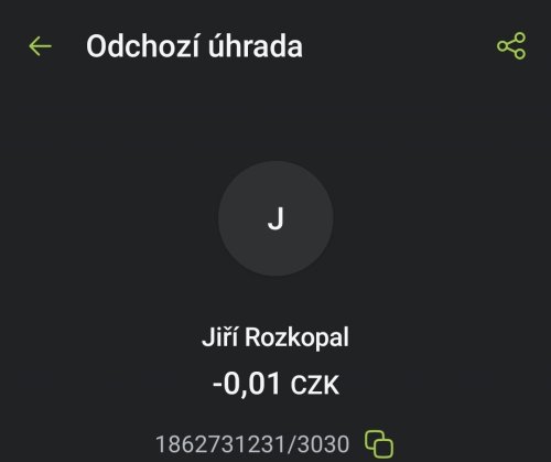 Poslat zprávupřidal/a skutečné jméno majitele účtu: Jiří Rozkopal k bankovnímu účtu: 1862731231/3030