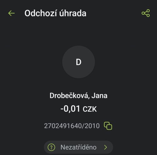 Poslat zprávupřidal/a skutečné jméno majitele účtu: Jana Drobečková k bankovnímu účtu: 2702491640/2010