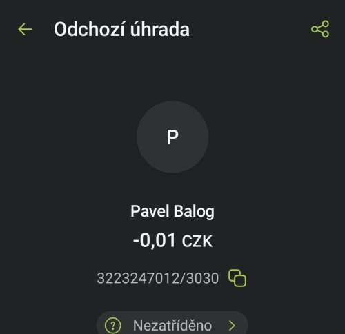 Poslat zprávupřidal/a skutečné jméno majitele účtu: Pavel Balog k bankovnímu účtu: 3223247012/3030