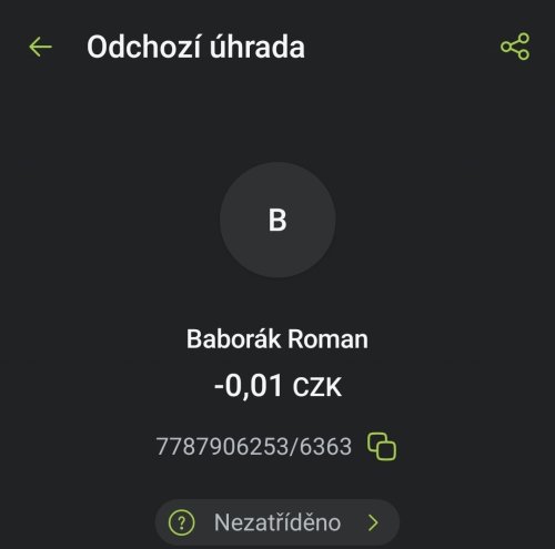 Poslat zprávupřidal/a skutečné jméno majitele účtu: Roman Baborák k bankovnímu účtu: 7787906253/6363
