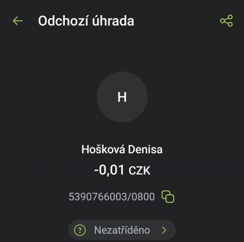 Poslat zprávupřidal/a skutečné jméno majitele účtu: Denisa Hošková k bankovnímu účtu: 5390766003/0800