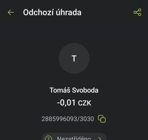 Poslat zprávupřidal/a skutečné jméno majitele účtu: Tomáš Svoboda k bankovnímu účtu: 2885996093/3030