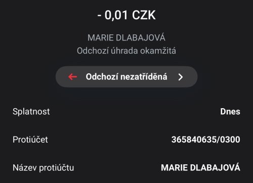 | 02. 02. 2026 | Online přes portál | 365840635/0300 | 2589,- | PID-EM-2026/1866550 () |