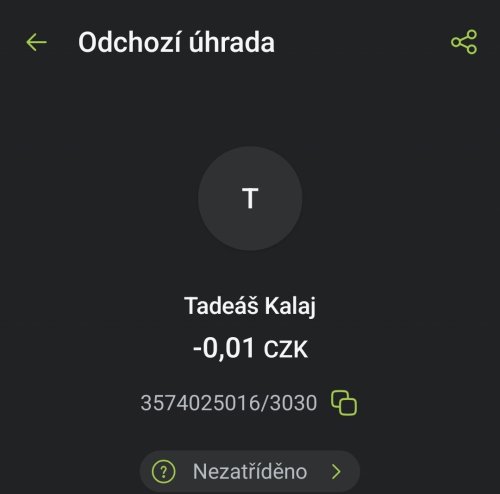 Poslat zprávupřidal/a skutečné jméno majitele účtu: Tadeáš Kalaj k bankovnímu účtu: 3574025016/3030