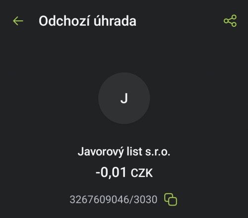 Poslat zprávupřidal/a skutečné jméno majitele účtu: Javorový list s.r.o. k bankovnímu účtu: 3267609046/3030
