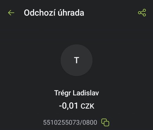 Poslat zprávupřidal/a skutečné jméno majitele účtu: Ladislav Trégr k bankovnímu účtu: 5510255073/0800