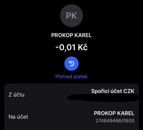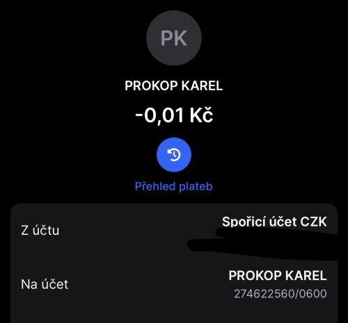 Poslat zprávupřidal/a skutečné jméno majitele účtu: Karel Prokop k bankovnímu účtu: 274622560/0600