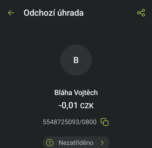 Poslat zprávupřidal/a skutečné jméno majitele účtu: Vojtěch Bláha k bankovnímu účtu: 5548725093/0800