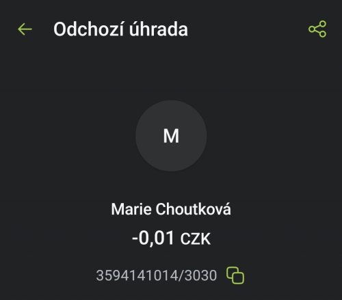 Poslat zprávupřidal/a skutečné jméno majitele účtu: Marie Choutková k bankovnímu účtu: 3594141014/3030
