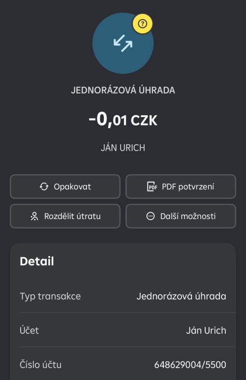 Poslat zprávupřidal/a skutečné jméno majitele účtu: Ján Urich k bankovnímu účtu: 648629004/5500