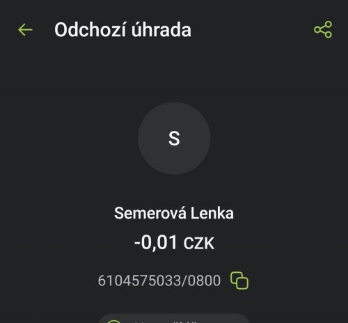 Poslat zprávupřidal/a skutečné jméno majitele účtu: Lenka Semerová k bankovnímu účtu: 6104575033/0800