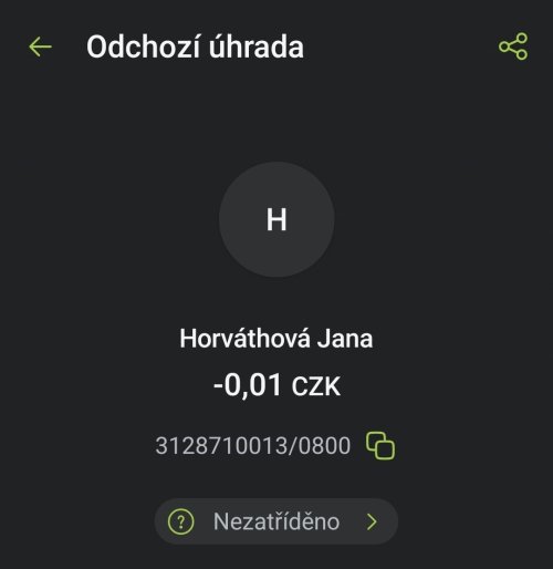 Poslat zprávupřidal/a skutečné jméno majitele účtu: Jana Horváthová k bankovnímu účtu: 3128710013/0800