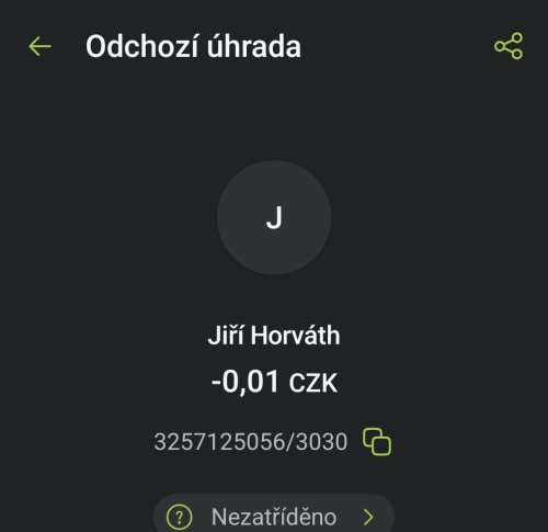 Poslat zprávupřidal/a skutečné jméno majitele účtu: Jiří Horváth k bankovnímu účtu: 3257125056/3030