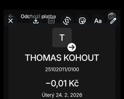 Poslat zprávupřidal/a skutečné jméno majitele účtu: Thomas Kohout k bankovnímu účtu: 25102011/0100