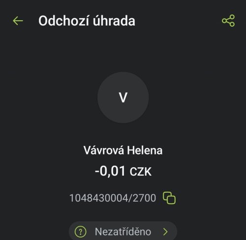 Poslat zprávupřidal/a skutečné jméno majitele účtu: Helena Vávrová k bankovnímu účtu: 1048430004/2700