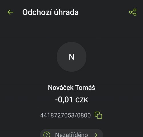 Poslat zprávupřidal/a skutečné jméno majitele účtu: Tomáš Nováček k bankovnímu účtu: 4418727053/0800