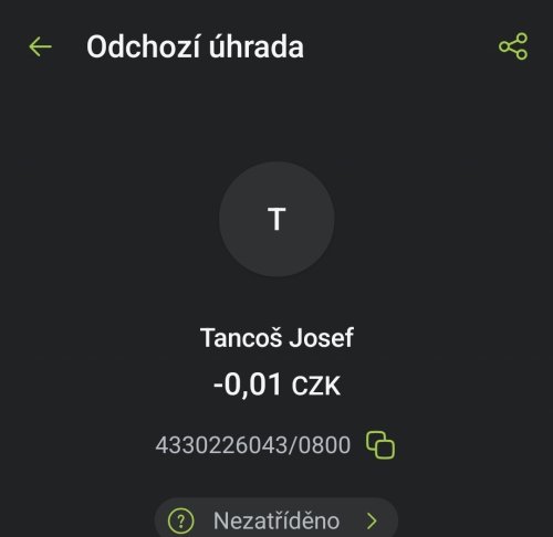 Poslat zprávupřidal/a skutečné jméno majitele účtu: Josef Tancoš k bankovnímu účtu: 4330226043/0800