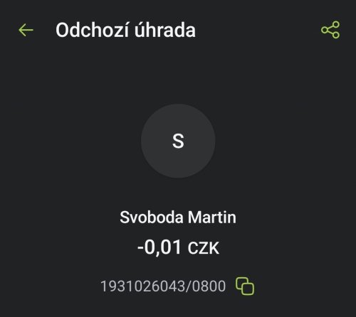Poslat zprávupřidal/a skutečné jméno majitele účtu: Martin Svoboda k bankovnímu účtu: 1931026043/0800