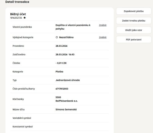 Poslat zprávupřidal/a skutečné jméno majitele účtu: Simona Semenská k bankovnímu účtu: 6717812003/5500