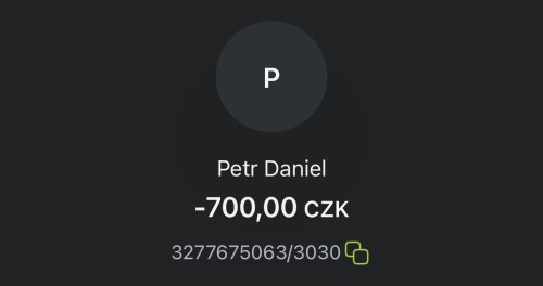 Poslat zprávupřidal/a skutečné jméno majitele účtu: Petr Daniel k bankovnímu účtu: 3277675063/3030