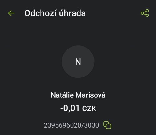 Zaplatila jsem za příze 1200,- a příze stále nikde. Nejdřív nemocný pes, pak že to zařídí kamarádka, stále nějaké výmluvy, většinou na psa. Trvalo to skoro rok, než jsem objevila tyto stránky, hledala jsem kde a jak podat TO a najednou mi Natalie Marisová alias Natalia Natali začala vypisovat, že proč to píšu, že mi peníze vrátí. Ku podivu dnes mi vše vrátila stylem, že je to vše OK a co že jsem dělala zbytečné věci. Účet na který jsem posílala a ze kterého mi peníze došly, ještě ani zde není mezi vypsanými.