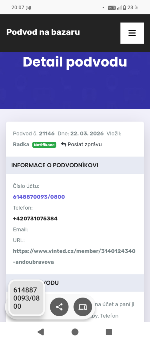 PŘIDAT INFORMACE O PODVODNÍKOVI