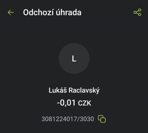 Poslat zprávupřidal/a skutečné jméno majitele účtu: Lukáš Raclavský k bankovnímu účtu: 3081224017/3030