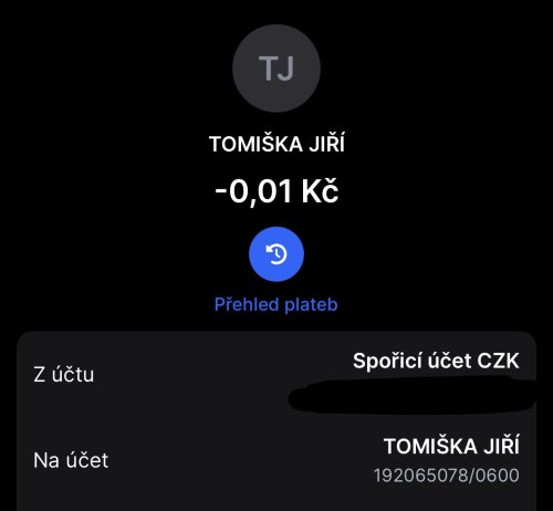 Poslat zprávupřidal/a skutečné jméno majitele účtu: Jiří Tomiška k bankovnímu účtu: 192065078/0600