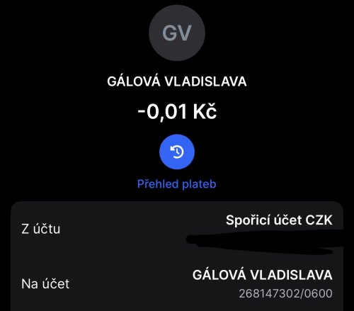 Poslat zprávupřidal/a skutečné jméno majitele účtu: Vladislava Gálová k bankovnímu účtu: 268147302/0600