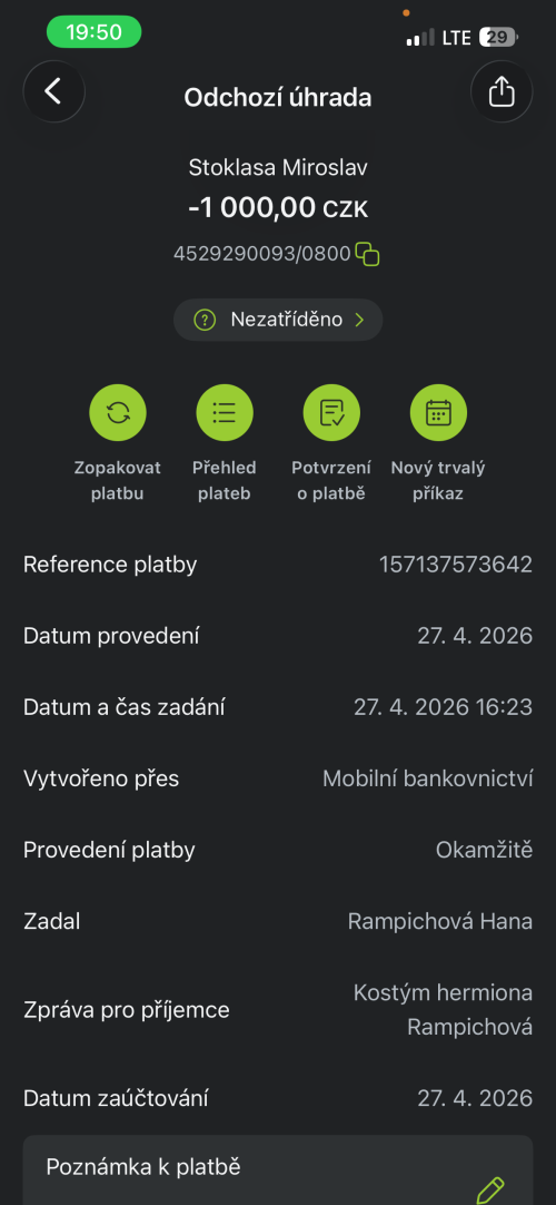 | 28. 04. 2026 | Online přes portál | 4529290093/0800 | 1000,- | PID-EM-2026/2028141 () |