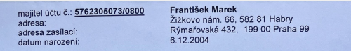 Poslat zprávupřidal/a skutečné jméno majitele účtu: František Marek k bankovnímu účtu: 5762305073/0800
