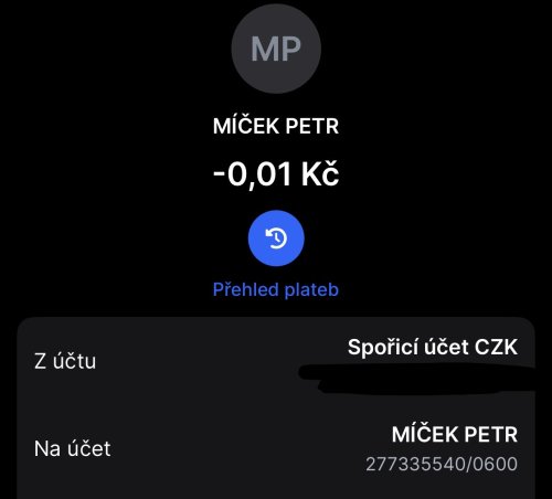 Poslat zprávupřidal/a skutečné jméno majitele účtu: Petr Míček k bankovnímu účtu: 277335540/0600